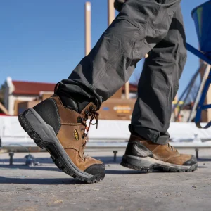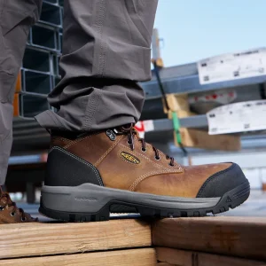 Protects like a work boot, feels like a sneaker. This versatile, waterproof men’s 6″ style features a tough leather upper and energy-returning cushioning.Best For: Warehouse | Framing | Carpentry | Electrician | Plumber | Trucker