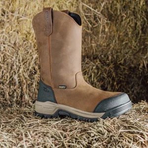 Protects like a work boot, fits like a sneaker. This waterproof pull-on style features a tough leather upper, energy-returning cushioning, and soft toe.Best For: Carpentry | Construction | Fabricator | Framing | Light Manufacturing | Trucker