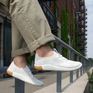 That minimal, flexible feeling you love – now in recycled P.E.T. knit for a sock-like fit and breathable comfort. Easy on & off with no-tie elastic lacing.